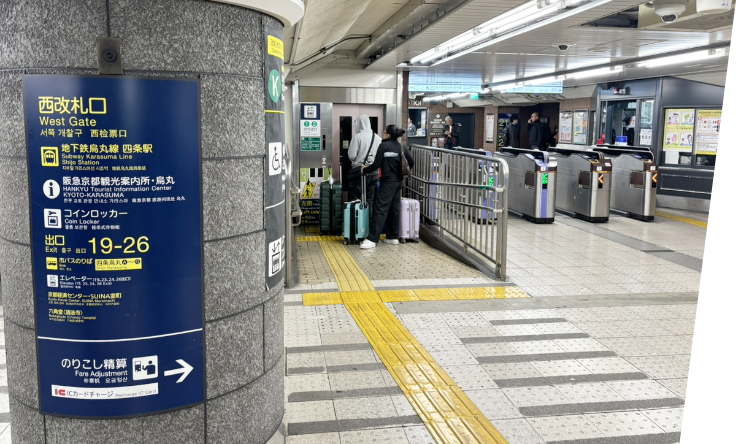 烏丸駅から四条駅方面の改札を出ます。