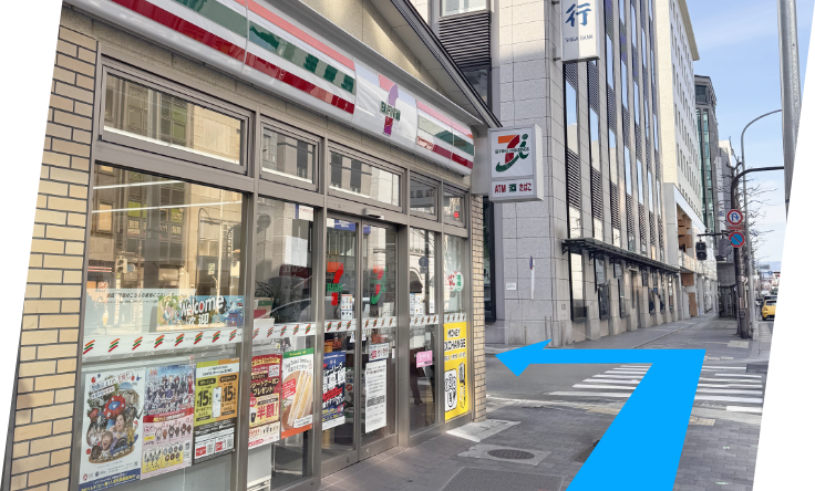 地上に出たら左に曲がり、左手にセブンイレブンが見えますので、そちらも左に曲がります。 -